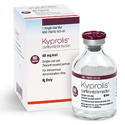 Kyprolis (carfilzomib) is a proteasome inhibitor used for the treatment of adult patients with relapsed or refractory multiple myeloma (RRMM) who have received one to three lines of therapy in combination with lenalidomide and dexamethasone; or dexamethasone; or daratumumab and dexamethasone; or daratumumab and hyaluronidase-fihj and dexamethasone; or Isatuximab and dexamethasone.